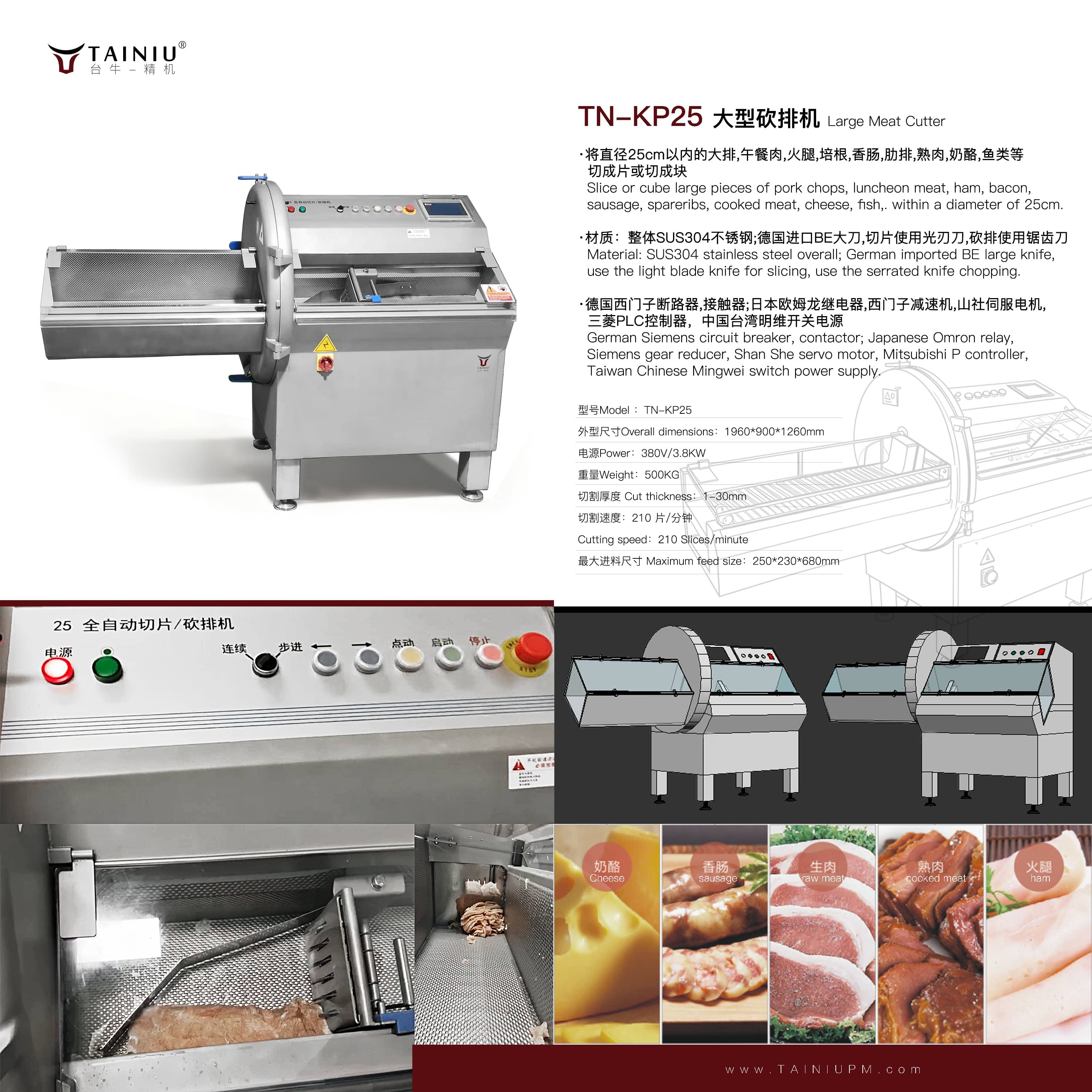 可将25cm直径以内的大排,午餐肉,火腿,培根,香肠,肋排,熟肉,奶酪,鱼类切片切块